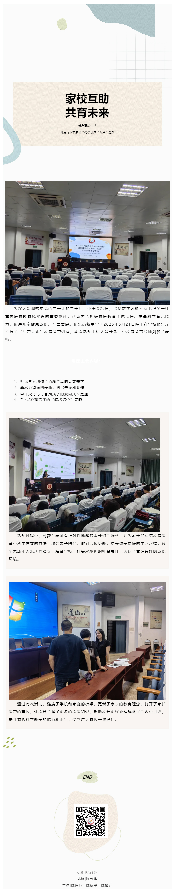 家校互助 共育未来——长乐高级中学开展线下家庭教育公益讲座“五进”活动