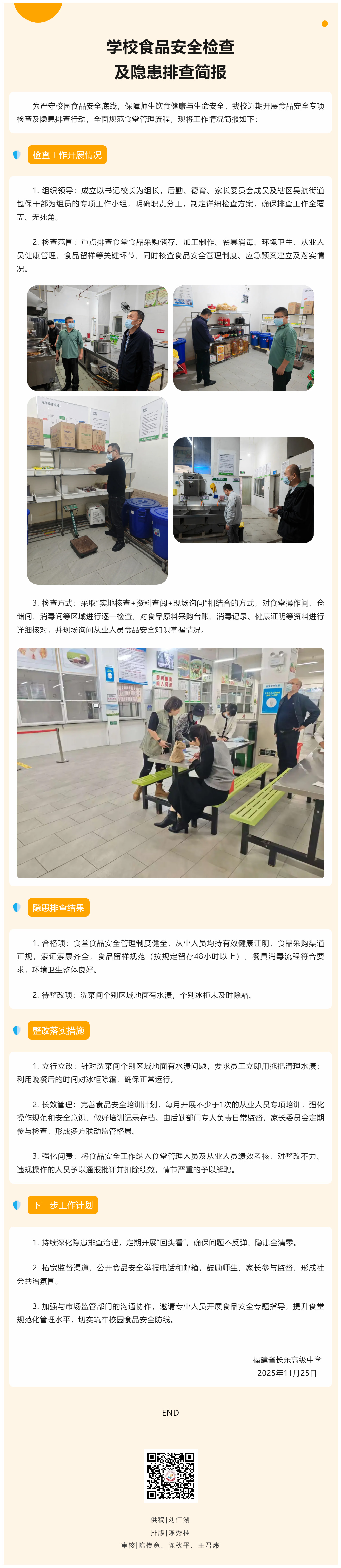 福建省长乐高级中学食品安全检查及隐患排查简报
